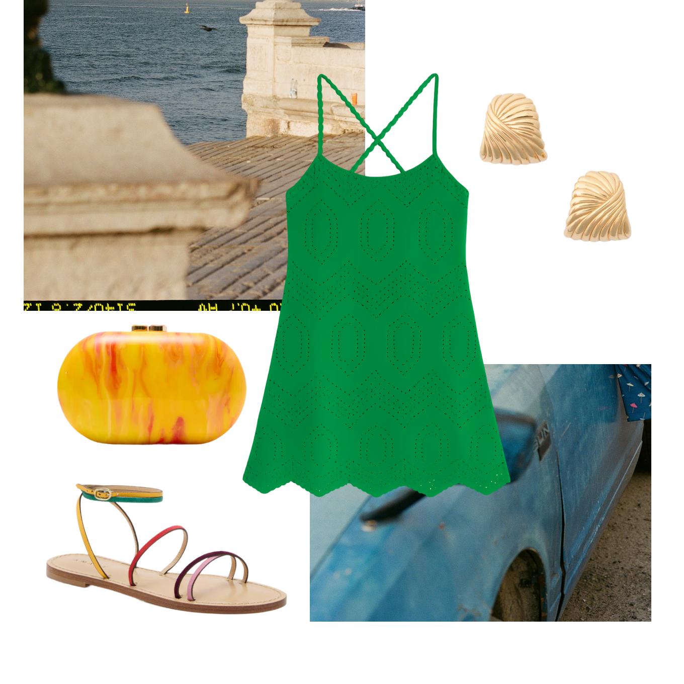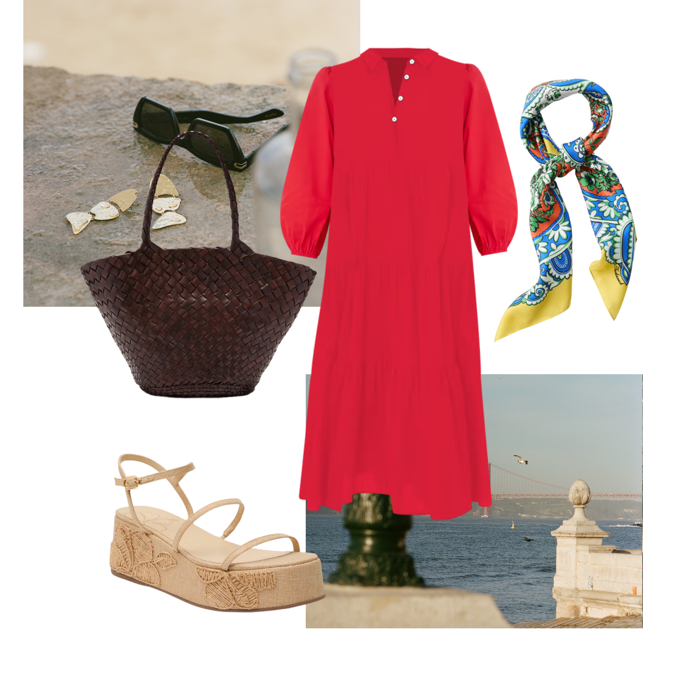 Wear pieces that speak to you, and are a little bolder than you might wear at home. Color, texture, and pattern is everywhere in Lisbon, and what you wear should follow suit. You’ll want pieces that move with you. Think breezy linen dresses, matching sets in tonal colors, and big sunglasses, a woven tote, and a silk scarf to tie it all together.